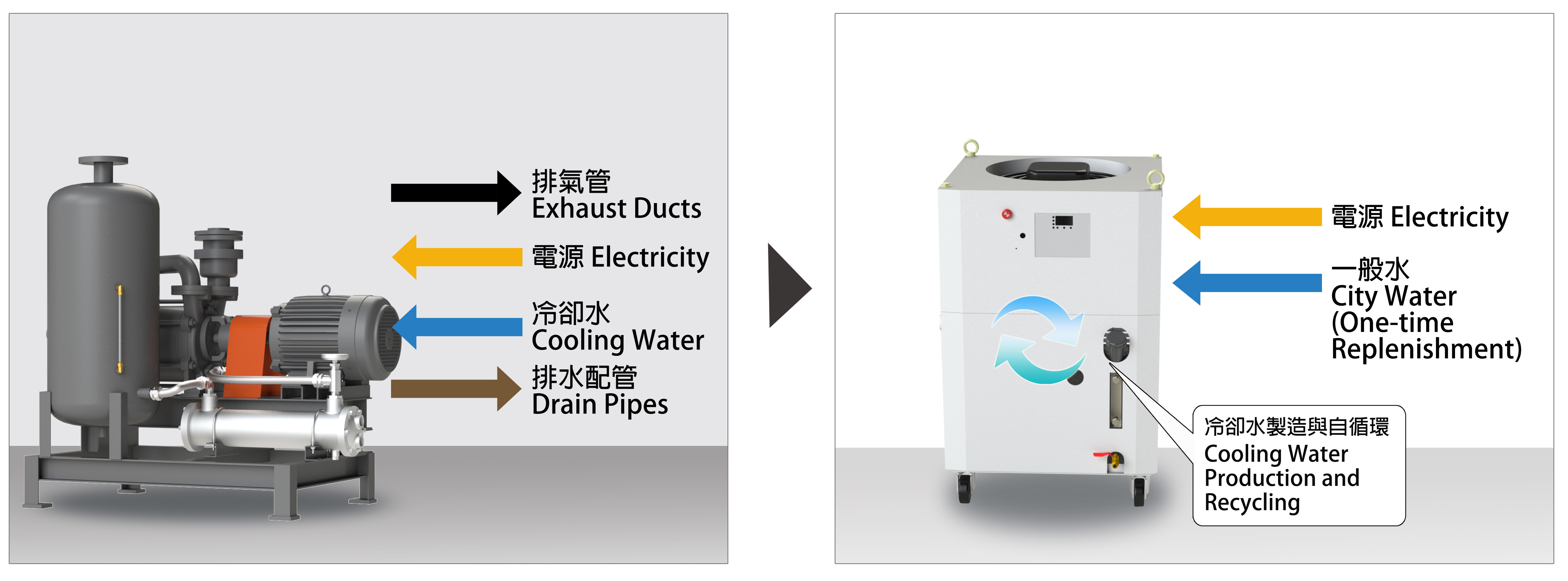 3. 真空度穩定,不會因水溫過高而造成製程真空效能衰退。